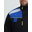 Контрастные васильковые вставки на плечах, карманах и манжетах;