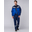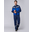 Произведён в России из ткани «Грета» — 65% полиэфир / 35% хлопок, плотность 210 г/м², с водоотталкивающей (ВО) пропиткой. Расцветка: основа — тёмно-синий, акценты — васильковый (воротник, кокетка, манжеты, грудка полукомбинезона). Дизайн подчёркивает функциональность и современный рабочий стиль.